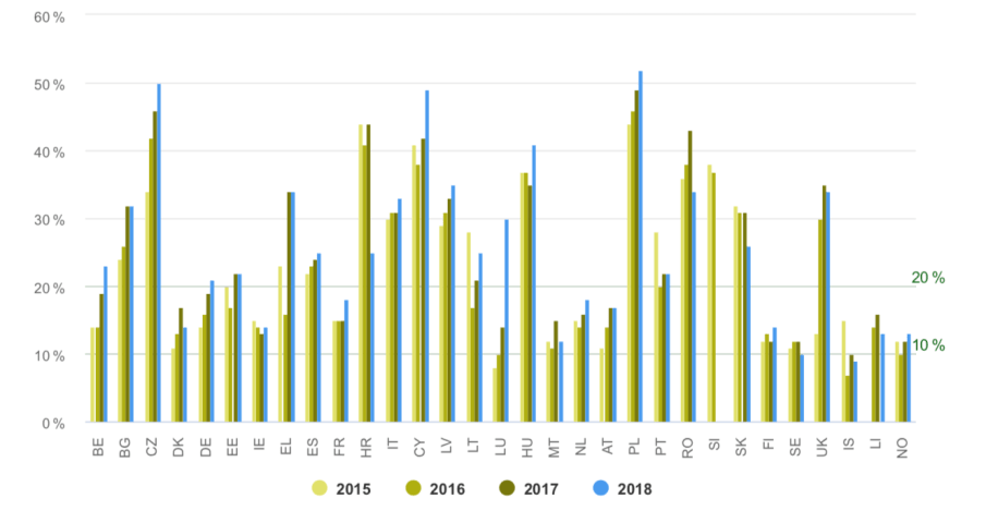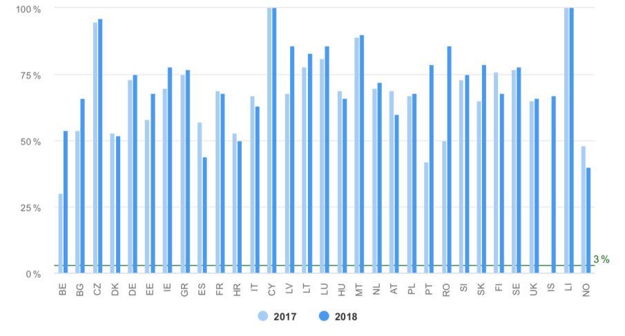Države članice se, sukladno prosječnim ocjenama, svrstavaju u jednu od tri kategorije; zadovoljava (zeleno), prosječno (žuto) i ne zadovoljava (crveno).