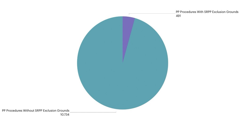 S druge strane, društveno odgovorna nabava kod nas je praktički nepostojeća. Toliko se slabo koristi da ju statistička izvješća uopće i ne spominju, pa je teško dati konkretnu procjenu o postotku takvih postupaka javne nabave kod nas. Možda je tu korisno istraživanje koje smo proveli o korištenju fakultativnog razloga isključenja povezanog sa društveno odgovornom nabavom iz članka 254. stavka 1. ZJN-a [efn_note] ”Javni naručitelj može isključiti gospodarskog subjekta iz postupka javne nabave ako može na odgovarajući način dokazati kršenje primjenjivih obveza u području prava okoliša, socijalnog i radnog prava, uključujući kolektivne ugovore, a osobito obvezu isplate ugovorene plaće, ili odredbama međunarodnog prava okoliša, socijalnog i radnog prava navedenim u Prilogu XI. ovoga Zakona.” [/efn_note]. Podaci su iz preko 11 tisuća dokumentacija o nabavi iz 2022.;